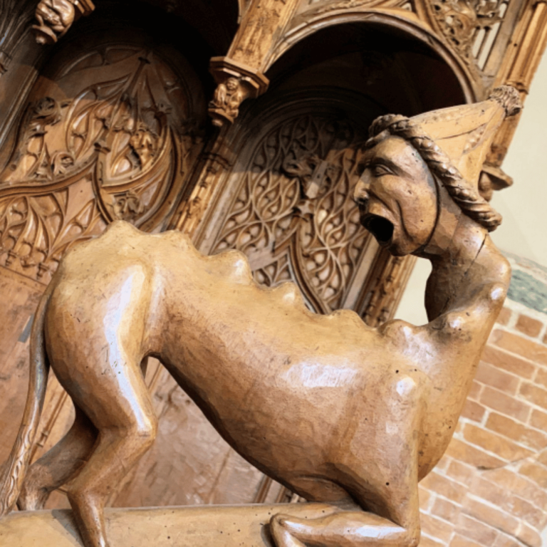 Now it is up to you to search through the carvings; follow the stalls, seats and pinnacles masterfully carved out of walnut wood, find the other monsters and mythological creatures that run through the precious artefact.
