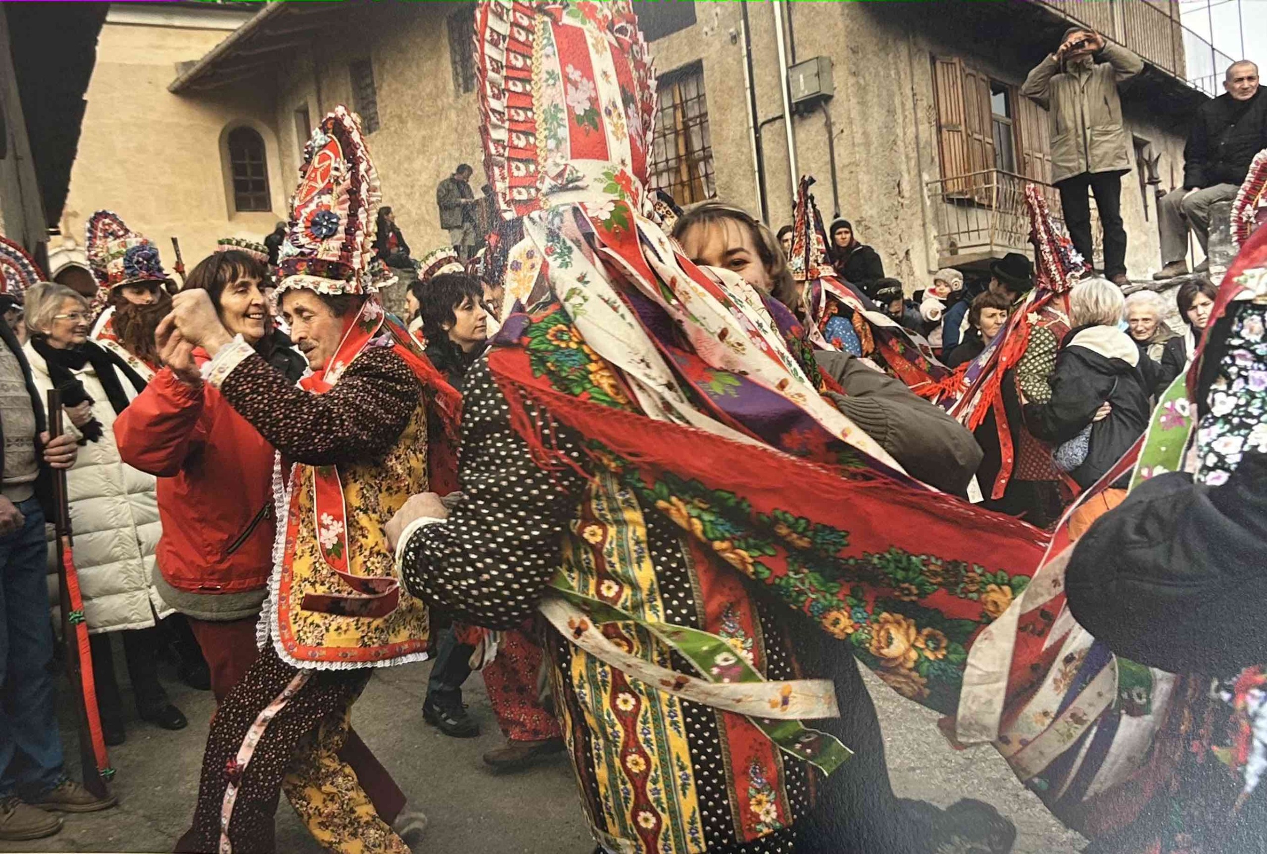 Through the critical texts of Fredo Valla, the exhibition intensively portrays Gaumy's work between 2003 and 2017 in the Cuneo alpine valleys. The first room contains 14 black and white photographs dedicated to mountain landscapes, while the second and third rooms display 30 unpublished colour photographs documenting the Baìo di Sampeyreflanked by traditional costumes e historical videos granted by the Sampeyre History and Ethnography Museum.
