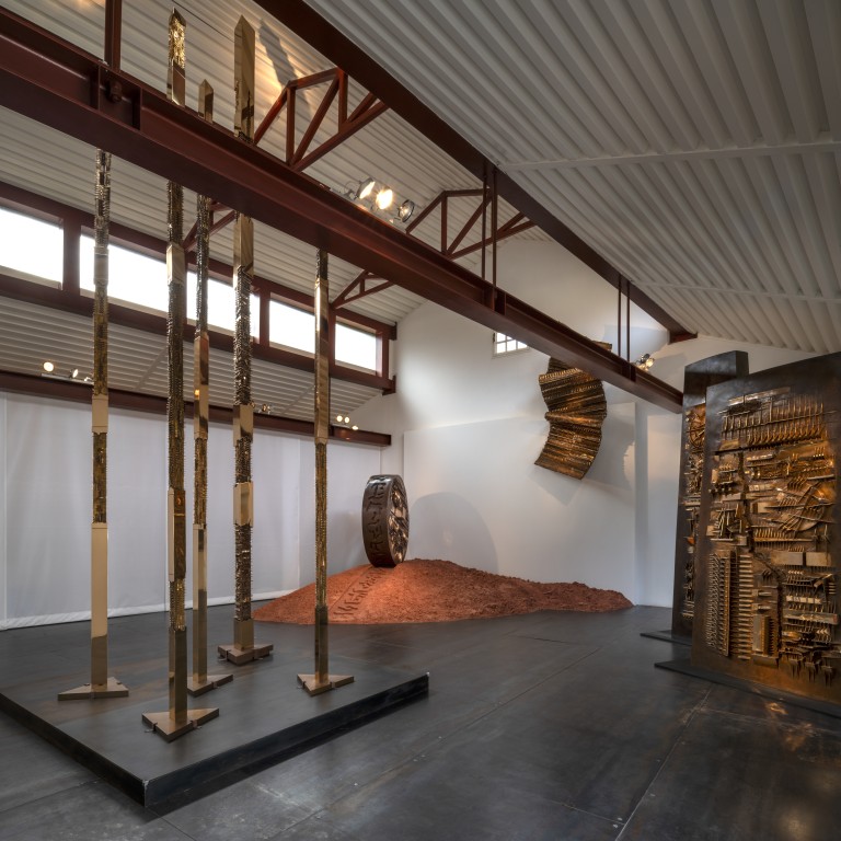 From the 1970s onwards, Pomodoro evolved his practice by conceiving sculpture as complex and immersive space, no longer a simple static object, but living environment where personal and collective memories intertwine in fluid visions. The exhibition opens in the spaces of the Courtyard and Salon, where around twenty works - including Sceptres, Shores of the seas, Rotary of Babylon, Sky rods e Cippi - are displayed in settings inspired by the experimental exhibitions of the 1980s and 1990s. These creations dialogue with each other, creating evocative environments, recalling contexts rich in history such as the Mediterranean and theEgypt.