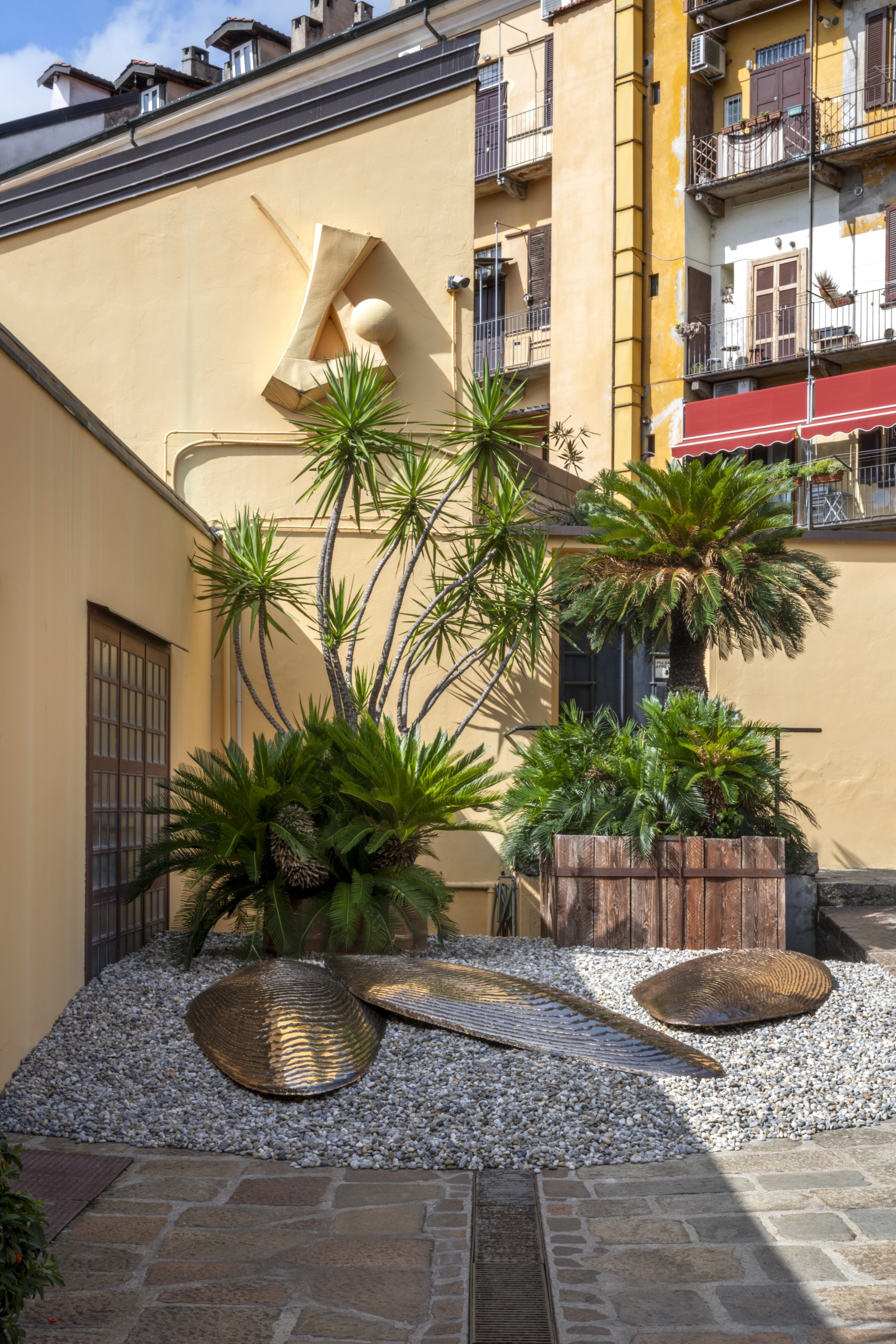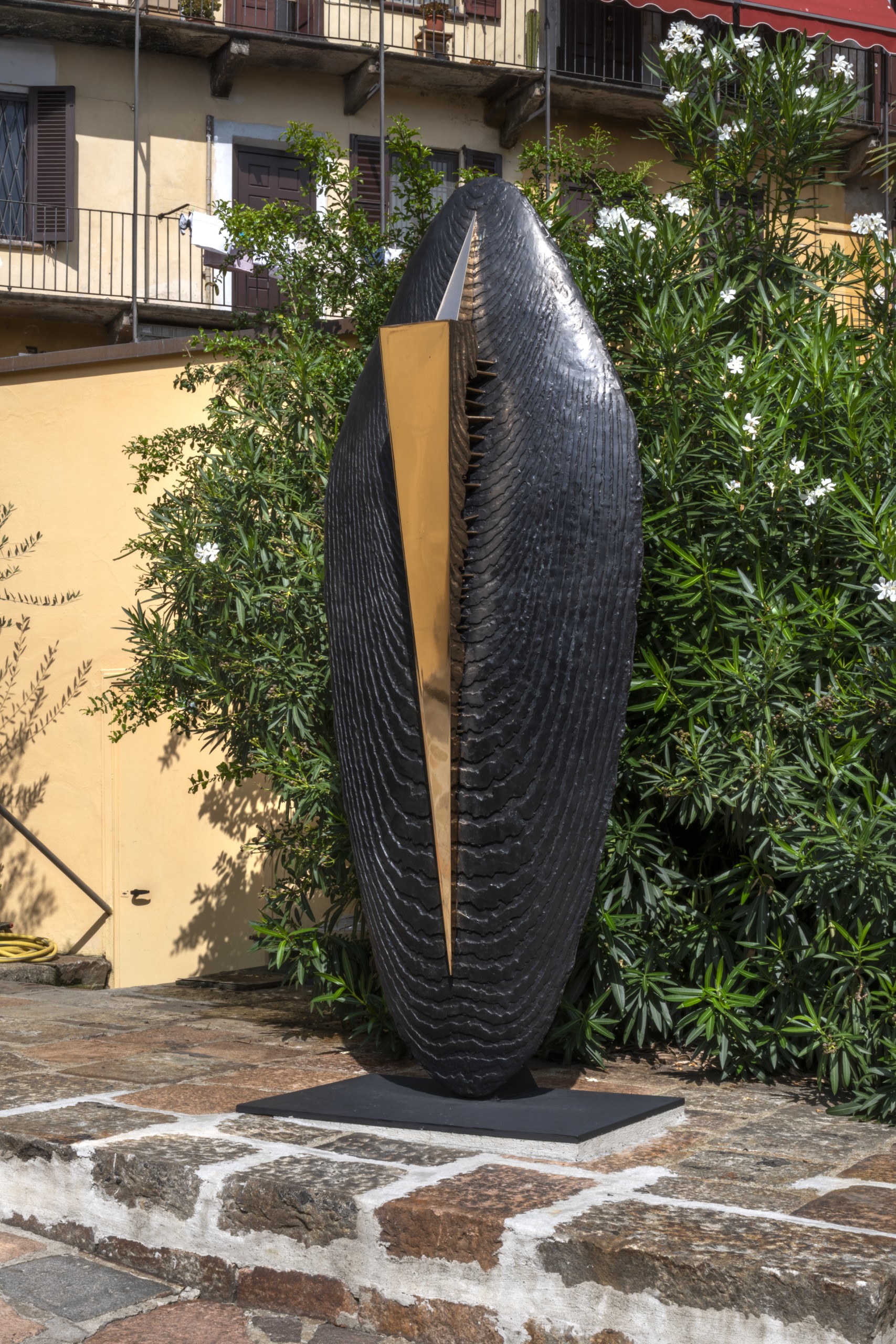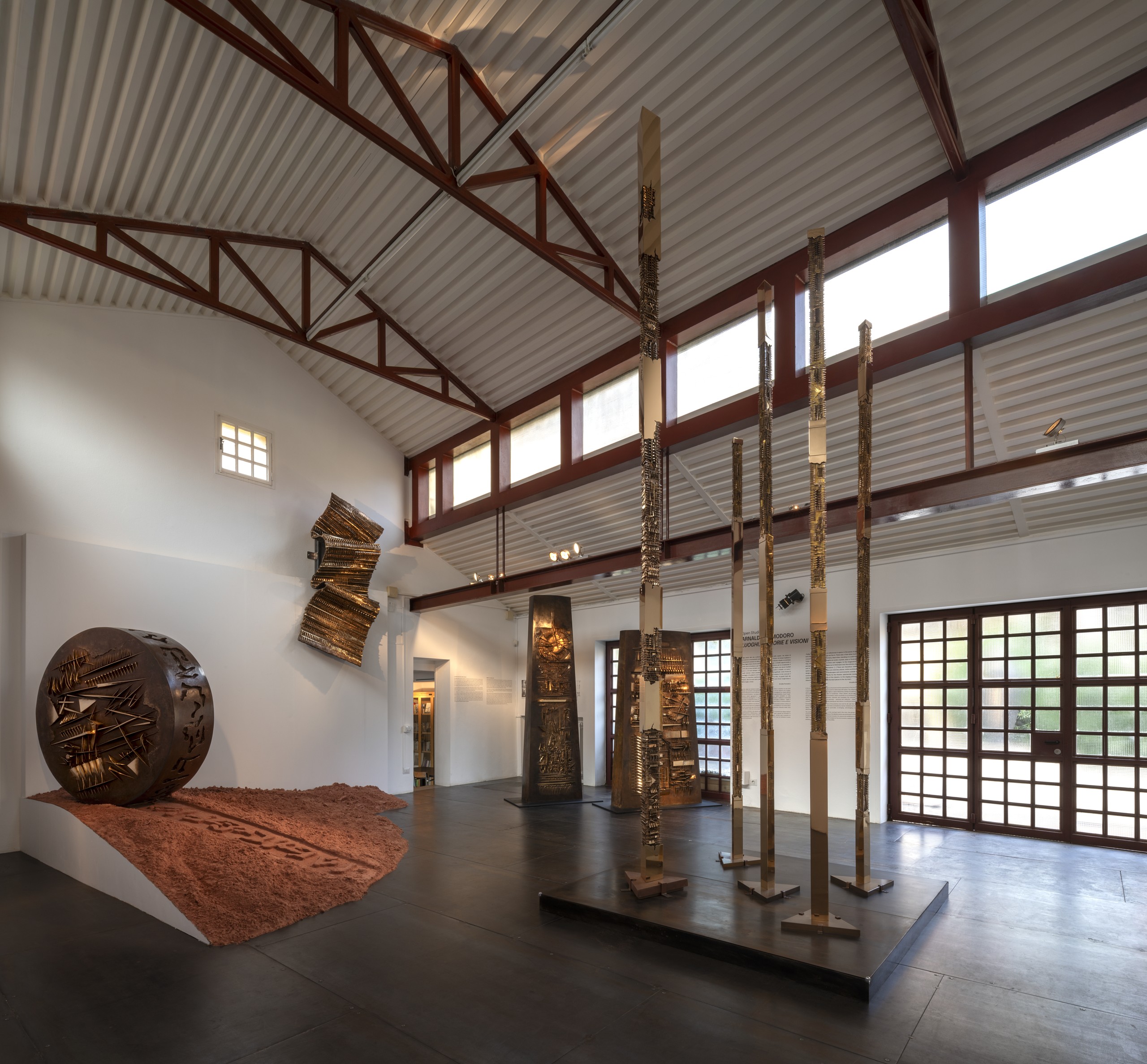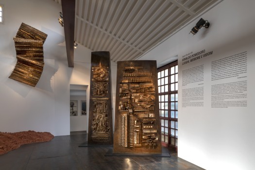 From the 1970s onwards, Pomodoro evolved his practice by conceiving sculpture as complex and immersive space, no longer a simple static object, but living environment where personal and collective memories intertwine in fluid visions. The exhibition opens in the spaces of the Courtyard and Salon, where around twenty works - including Sceptres, Shores of the seas, Rotary of Babylon, Sky rods e Cippi - are displayed in settings inspired by the experimental exhibitions of the 1980s and 1990s. These creations dialogue with each other, creating evocative environments, recalling contexts rich in history such as the Mediterranean and theEgypt.