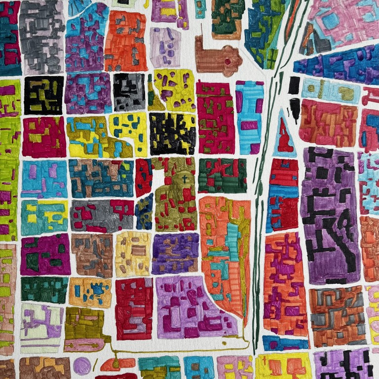The route unfolds in the picturesque Penelope Hall of Como Silk Museum, offering an intense reflection on the condition of the suspension as a state of the soul and a dilated perception of time. The canvases depict back-to-back figures, quiet interior e city maps evoking places of waiting and contemplation, in which painting becomes an instrument of introspection. Le sculptures, instead, represent suspended hands emerging from chromatic surfaces, symbols of a missed or desired encounter, “tactile surrogates”according to the psychiatrist Nicola Molteni.