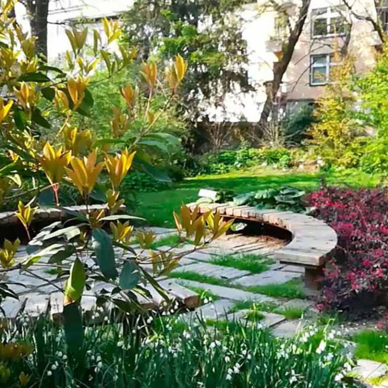 L'Brera Botanical Garden reveals to the visitor its historic garden characterwith the peculiar 18th-century layout resurfaced thanks to the conservative restoration completed in 2001 and defined by a linear system of dense long and narrow flowerbeds, two striking elliptical pools and a arboretum, redeveloped in the 2018-2019.