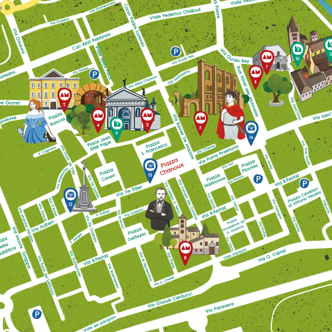 Scopri la città di Aosta insieme a Leone attraverso una mappa progettata appositamente per bambini e famiglie. Con immagini accattivanti, giochi interattivi e storie avvincenti, questa mappa ti condurrà alla scoperta dei tesori della città e dei suoi musei in modo divertente!