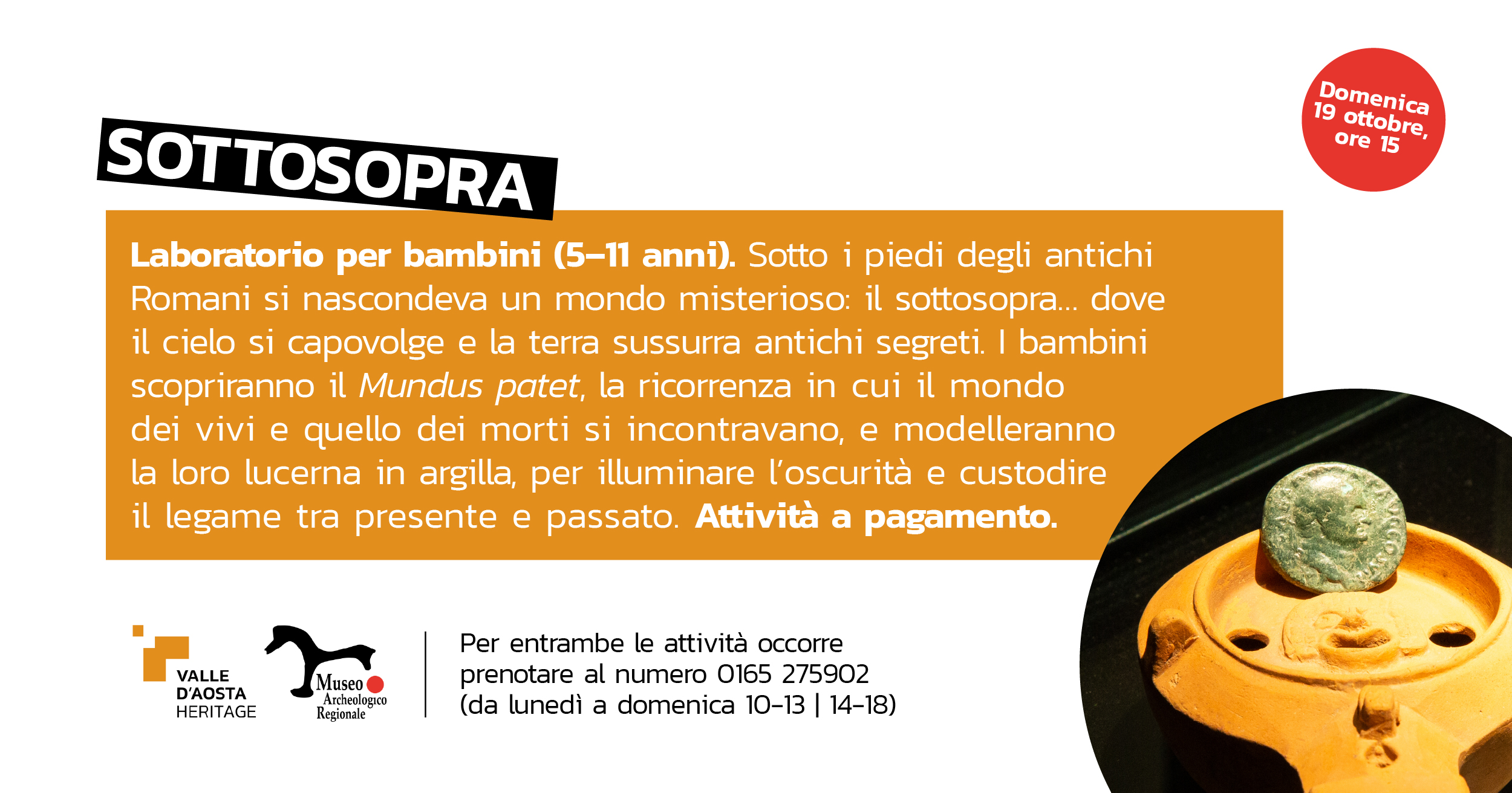 In contemporanea, i bambini dai 5 agli 11 anni potranno prendere parte al laboratorio creativo Sottosopra, per esplorare un mondo misterioso dove il cielo si capovolge e la terra rivela antichi segreti. Durante l’attività, i piccoli partecipanti modelleranno con l’argilla la propria lucerna personale, simbolo di luce e conoscenza.
