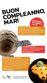 📅 Domenica 19 ottobre, alle ore 15, il pubblico adulto potrà partecipare alla speciale visita guidata Mundus patet. Mondo di sopra e mondo di sotto: un percorso tra le sale del museo e il sito archeologico sotterraneo per scoprire l’antica ricorrenza romana del Mundus patet, quando si credeva che la porta dell’Aldilà si aprisse per consentire il dialogo tra il mondo dei vivi e quello dei morti.