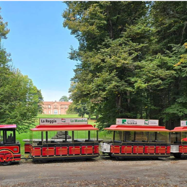 Il trenino attraversa l’area degli Appartamenti Reali, prosegue lungo la zona dei cavalli e delle cascine storiche, con sosta e visita alla suggestiva Chiesetta di San Giuliano.